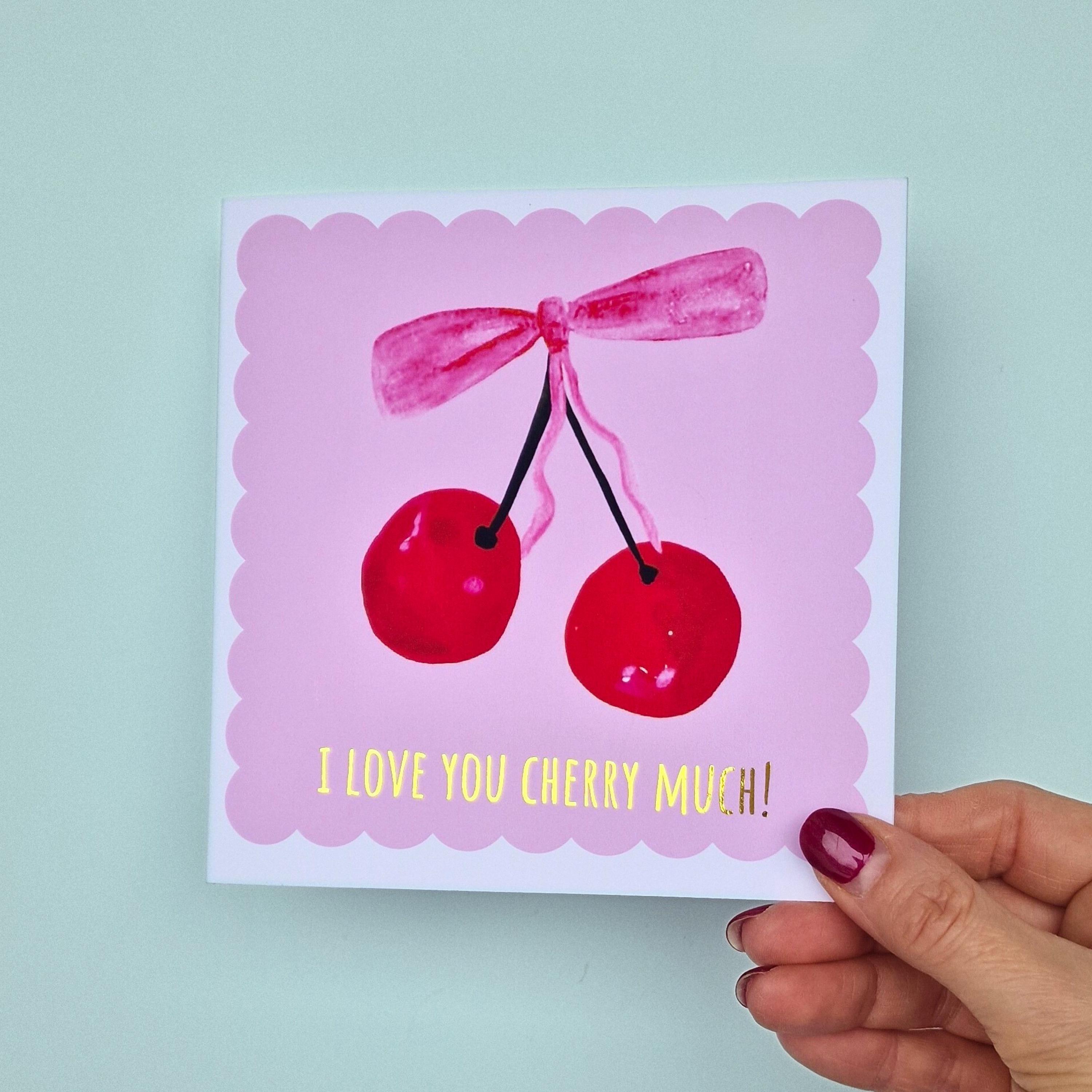 • Elegant gold foil text reading "I LOVE YOU CHERRY MUCH!" creates a playful and loving sentiment